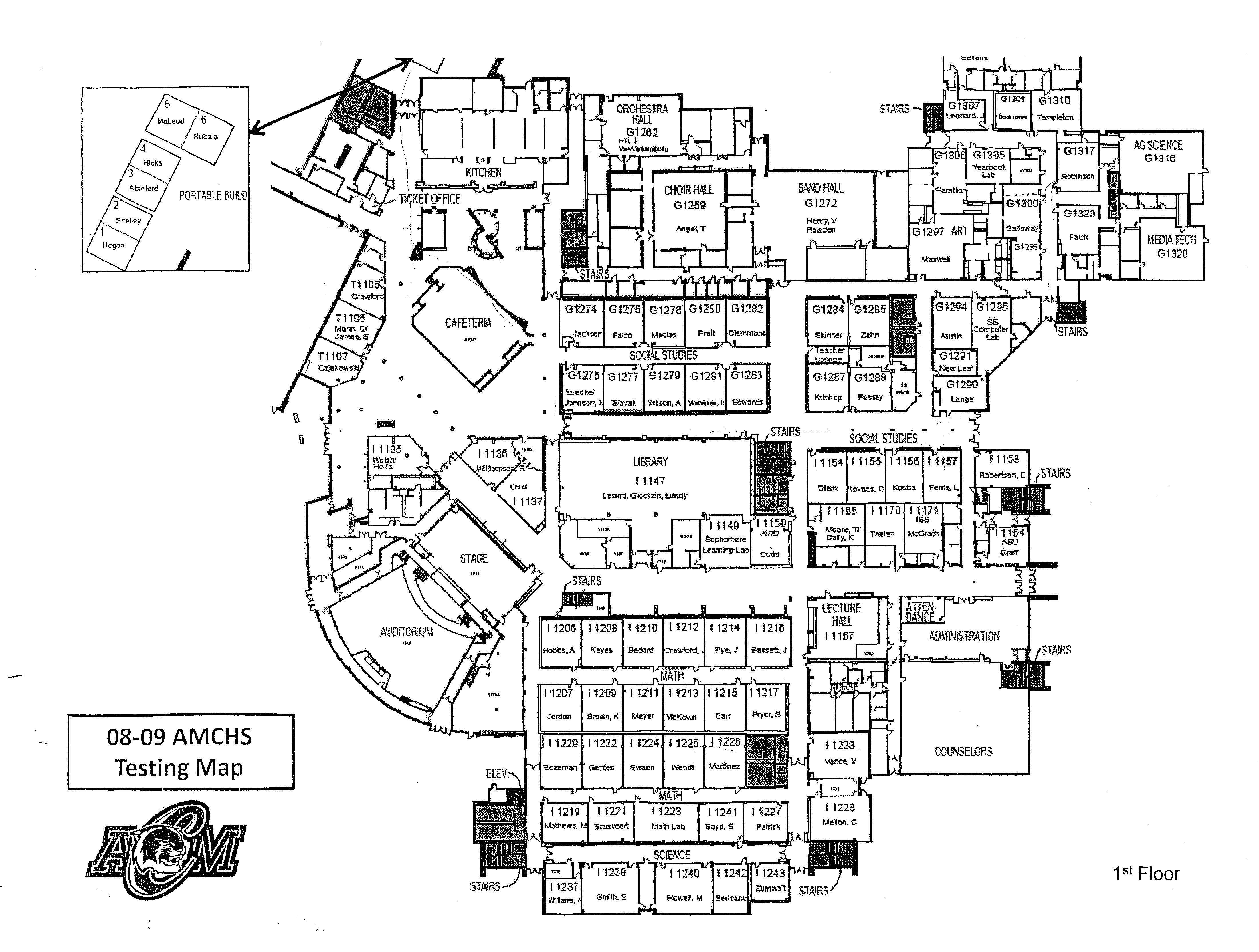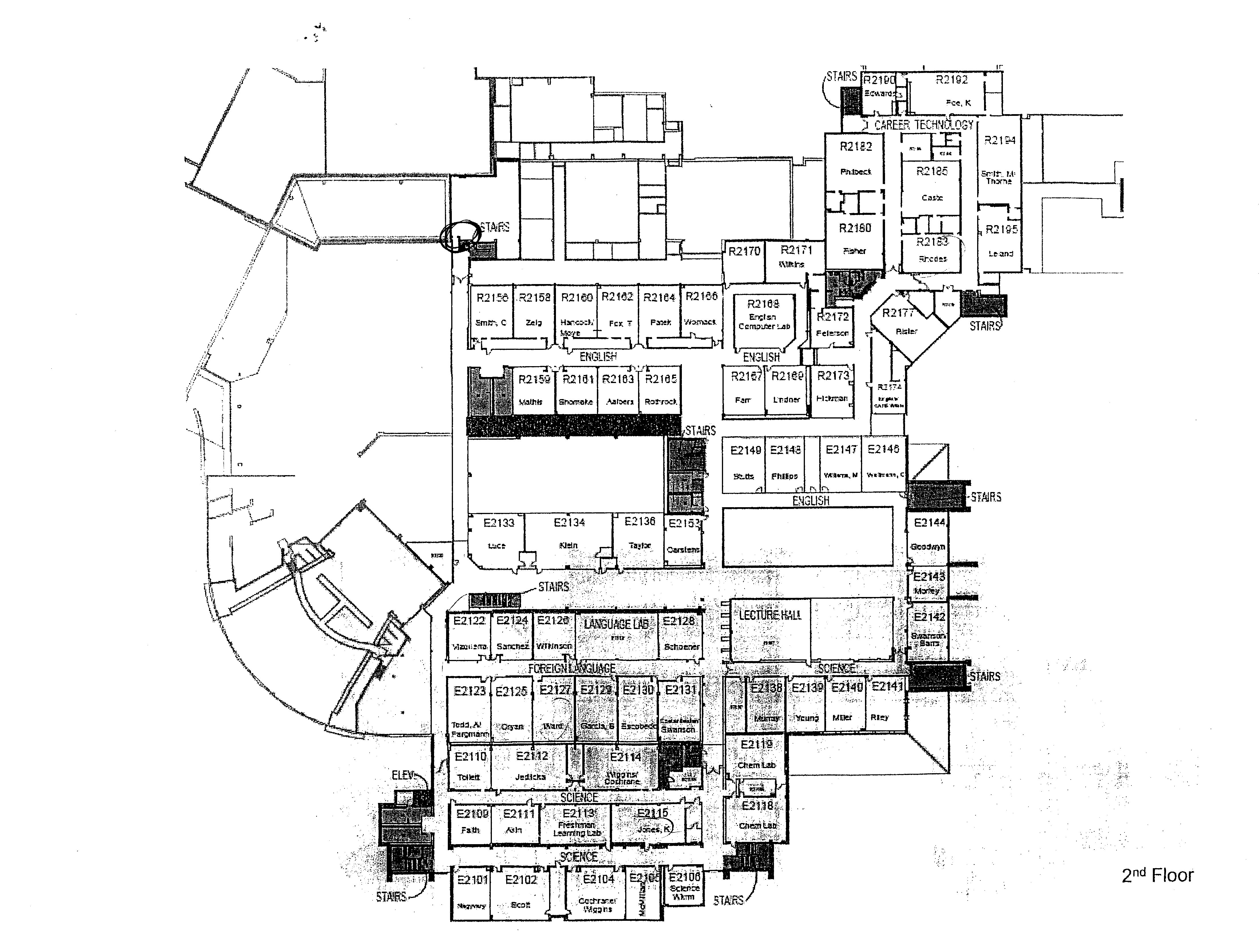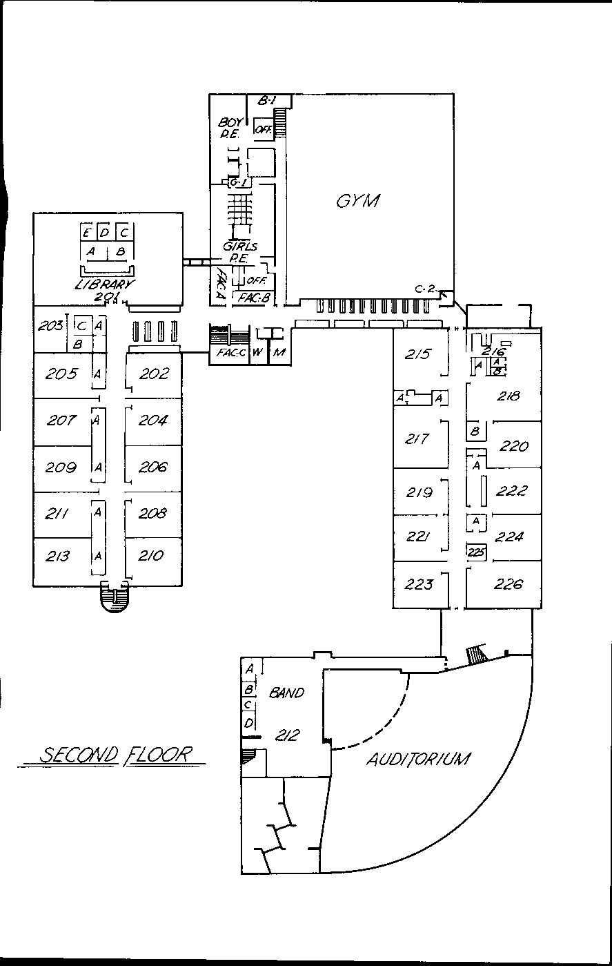 While I didn't find this until after I graduated, this is the plan of the high school in the early 1970s. The current site of the offices (at least of the late 2000s) is where the gym is in this plan.