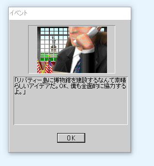 There's a video spoken only in Japanese that I can't understand but the gist of it is there are two people, a female tour guide and a male security guard who will meet up and fall in love at some point during the course of the game. Through uploading the video to YouTube and translating from there, the translated transcript is as follows, best I could follow and understand it: What do you think? Are you used to the building system? This time your name is Liberty Island, famous for the Statue of Liberty. It is to further develop this famous Liberty Island. Well, this is one of the best tourist attractions in the world. Relax your shoulders and go the other way around. First of all, the boat. And set up a ticket office in the lobby. Set up a ticket system and go up the elevator 23 times. Then more and more tourists come up using the spiral staircase. You will give it to me. Rather let these two people participate in the story. One is Harry, a security guard. He is a brave and honest young man who confronted the terrorists. And this is female Liberty Island guide, Marie Quant, who is in charge of Liberty Island. Once a day at a fixed time, they will have a private conversation.